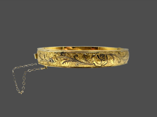 Victorian Bengle Bracelet 12k Gold Fill with Safety Chain