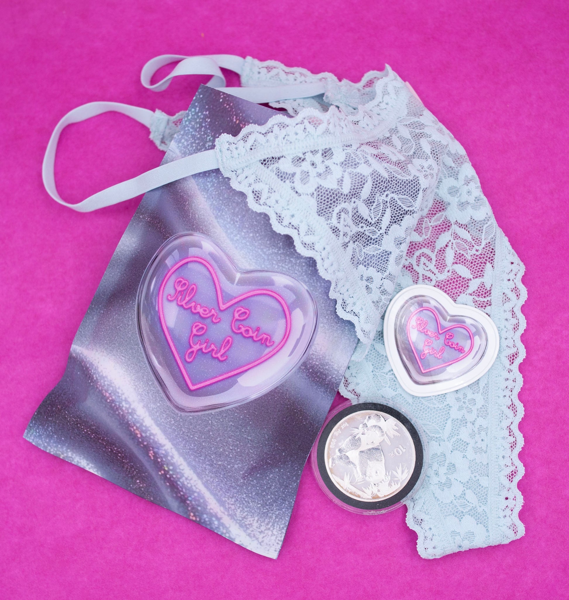 Your purchase will include 1 of each of the listed items above packaged in a pink box, sealed with a heart, & shipped to you! Who doesn't love panties and bullion!